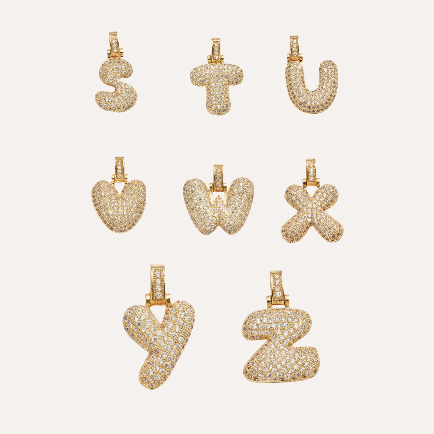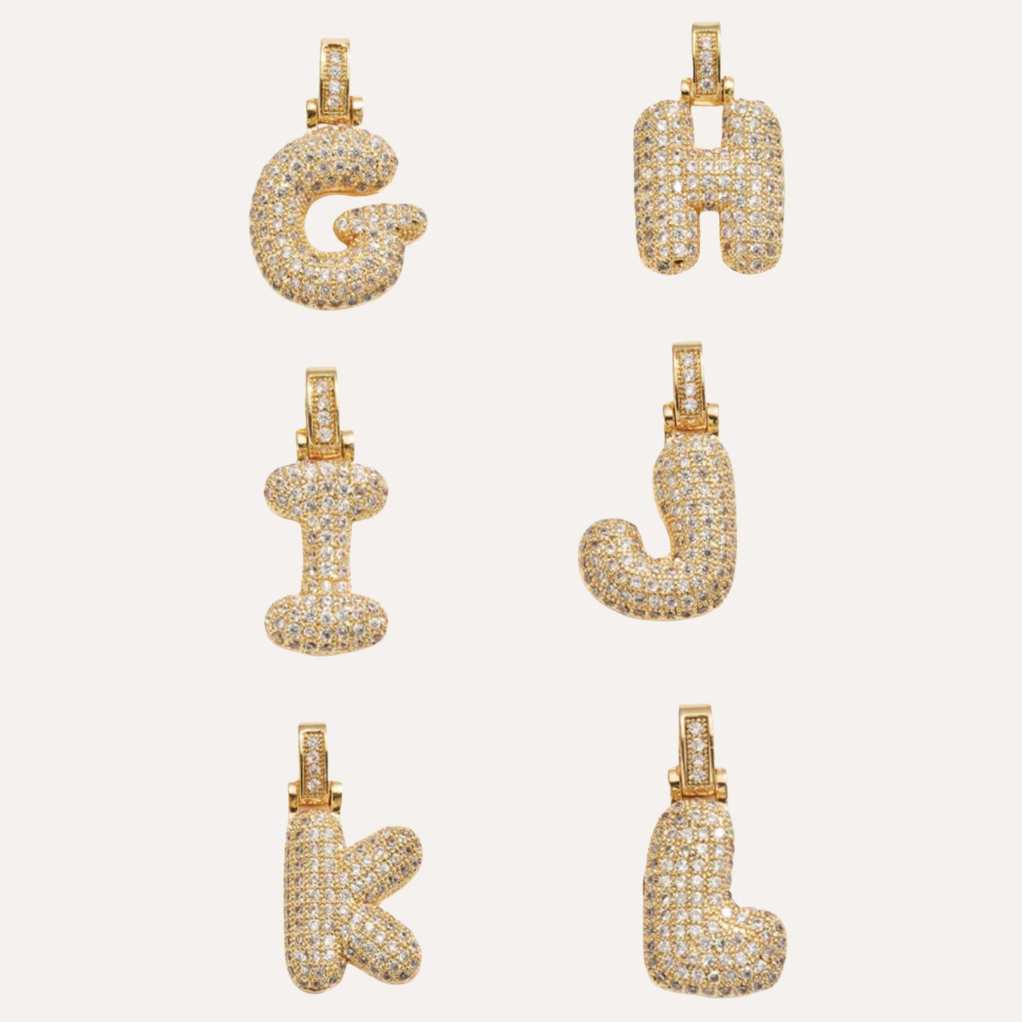 Meet your perfect letter necklace charm. The traditional initial necklace gets an upgrade with our Bubble Initial Charm. No necklace chain stack is complete without it! Handcrafted in 14k yellow gold. Featuring sparkling stones and a gorgeous chain, this water and tarnish proof necklace is the perfect add to your everyday wardrobe.