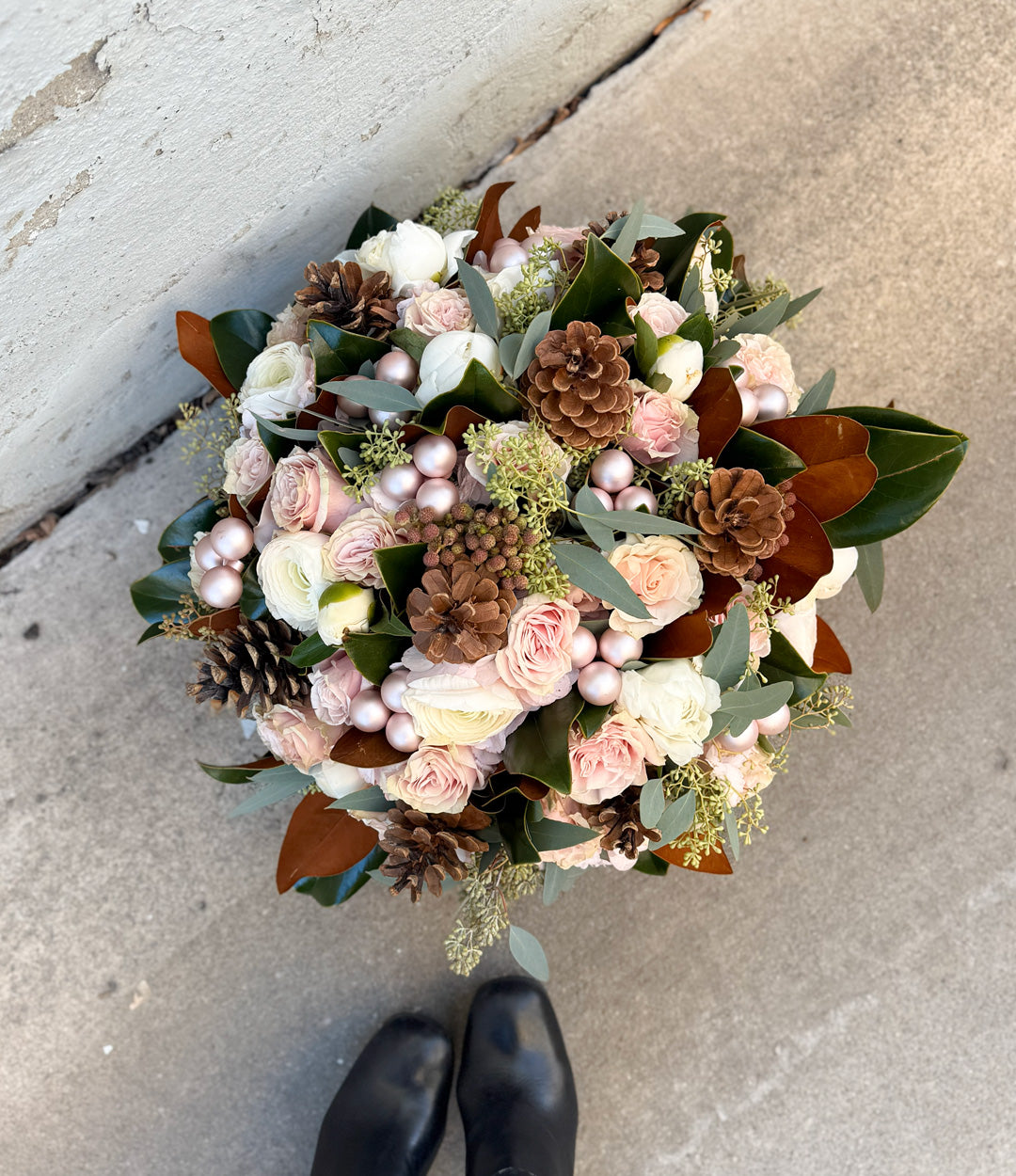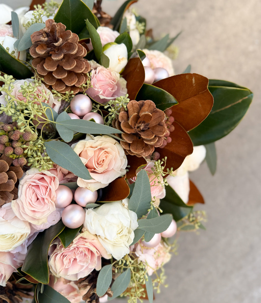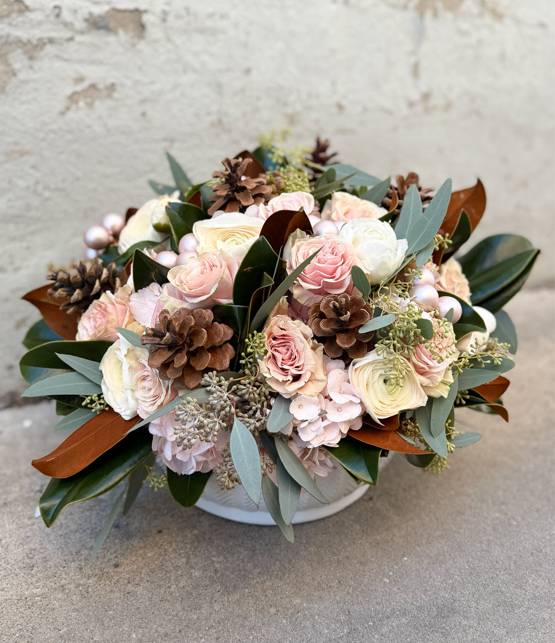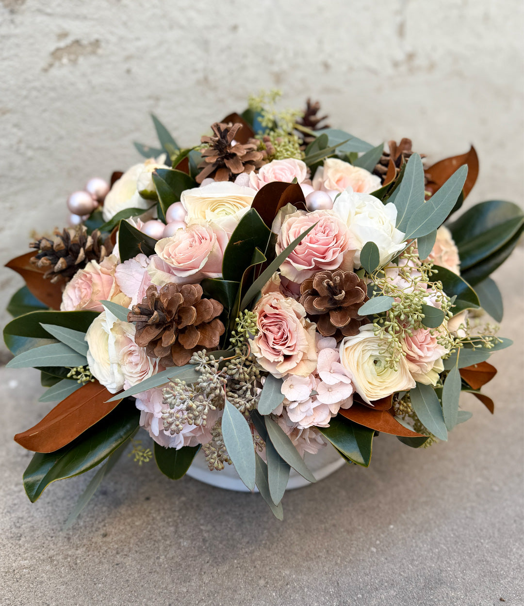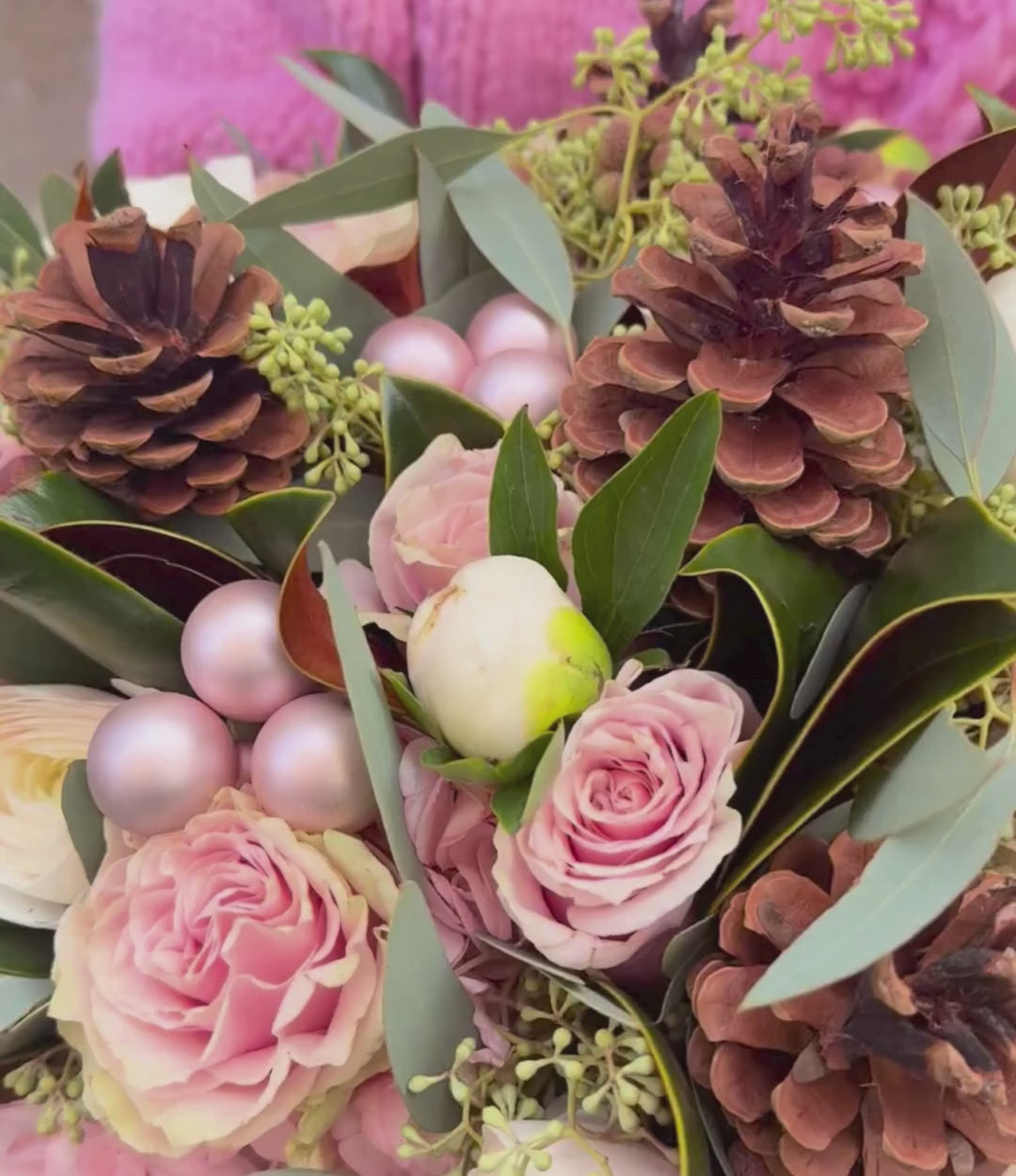 Embrace the season with My Pink Holiday, a sophisticated floral arrangement that marries winter elegance with festive charm. Soft blush tones blend seamlessly with crisp greenery, creating a luxurious arrangement that feels both festive and stylish. Whether gifted to someone special or used to set a holiday table, it brings the comfort and joy of the season into your home with elegance.