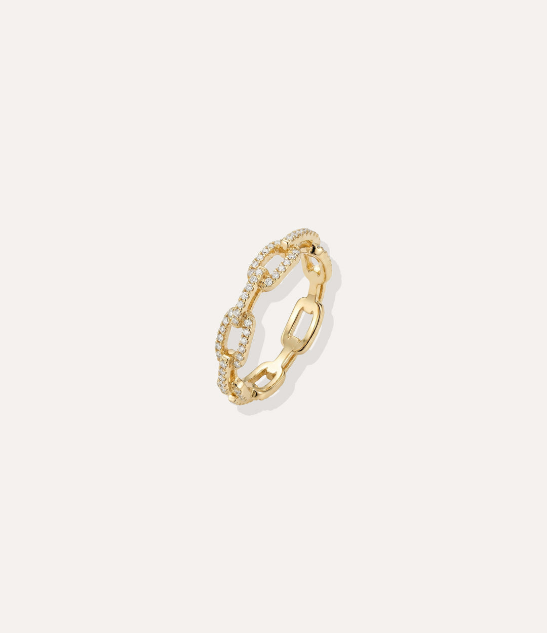 Chain Link Ring in 18k gold plated finish, featuring a continuous link design with subtle diamond accents, isolated on a white background.